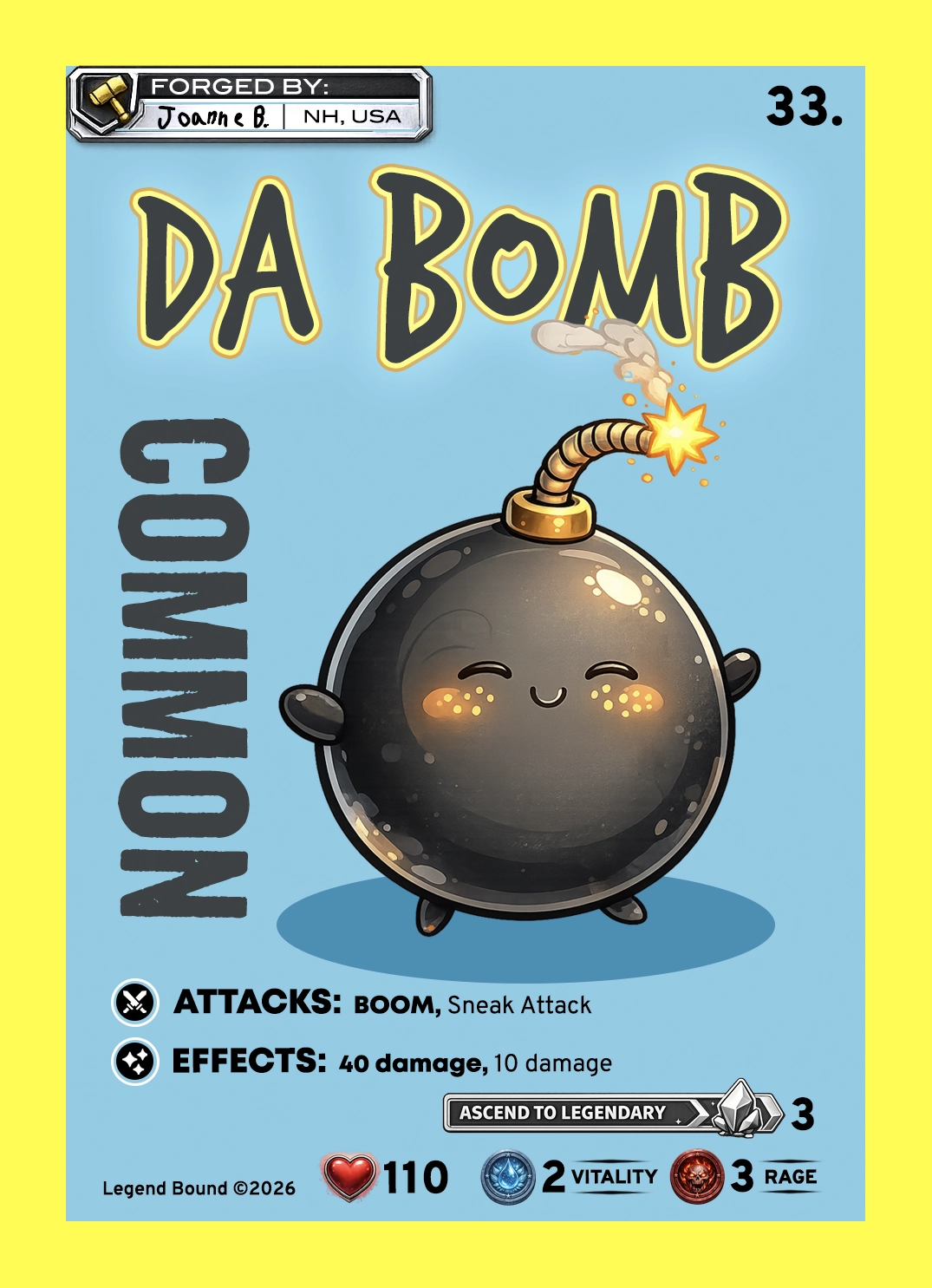 Legend Bound began with a single drawing — and a dream. Jaxton McGurren (4th grade student) turned his art into fantasy trading cards, and soon friends joined, submitting their own creations. What started as sketches on paper became a living universe of heroes, monsters, and mythical relics, where anyone’s imagination can become legendary.